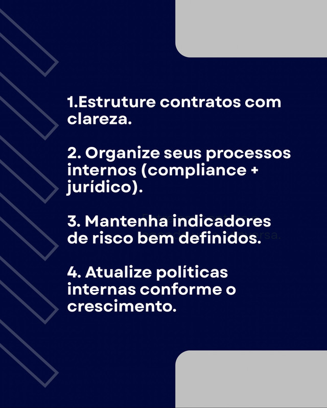 Crescer sem gestão gera risco. Contratos claros, processos organizados e compliance ativo são o que sustentam empresas que escalam com segurança.